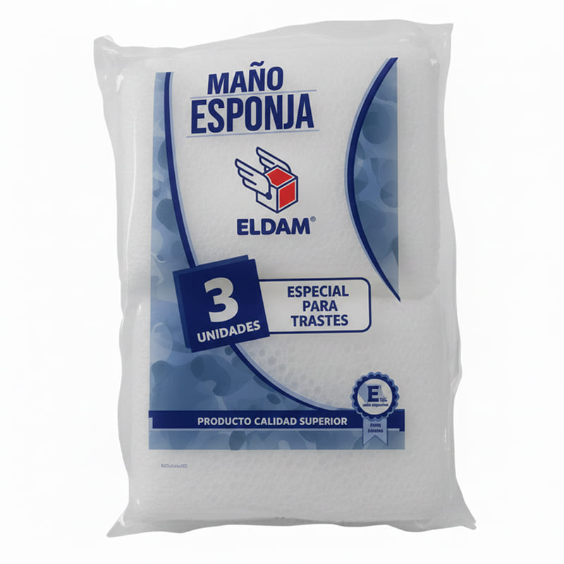La esponja en malla de 3 unidades es un accesorio de limpieza delicada que destaca por su recubrimiento de red plástica que genera abundante espuma con poco jabón, su núcleo de espuma suave que retiene la humedad para un lavado continuo y su superficie no abrasiva que garantiza una limpieza profunda sin rayar materiales sensibles como el teflón o la cerámica.